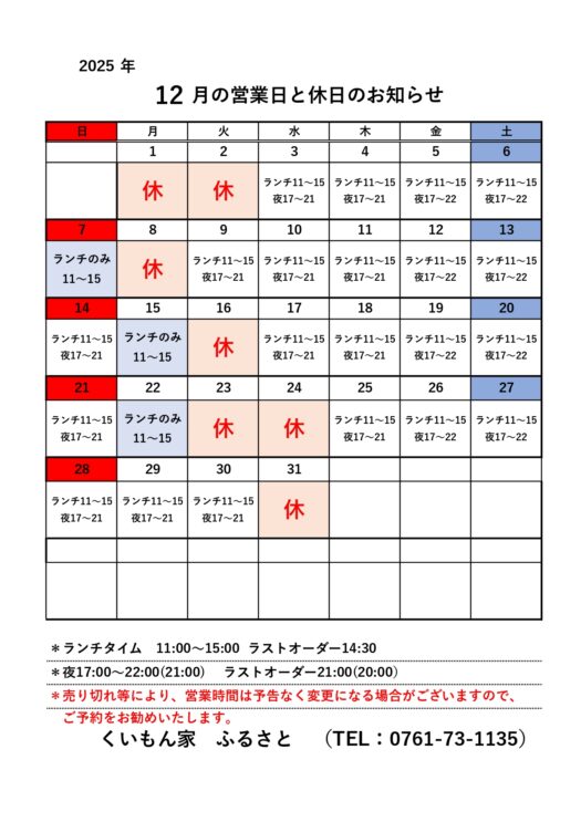 12月営業のお知らせ